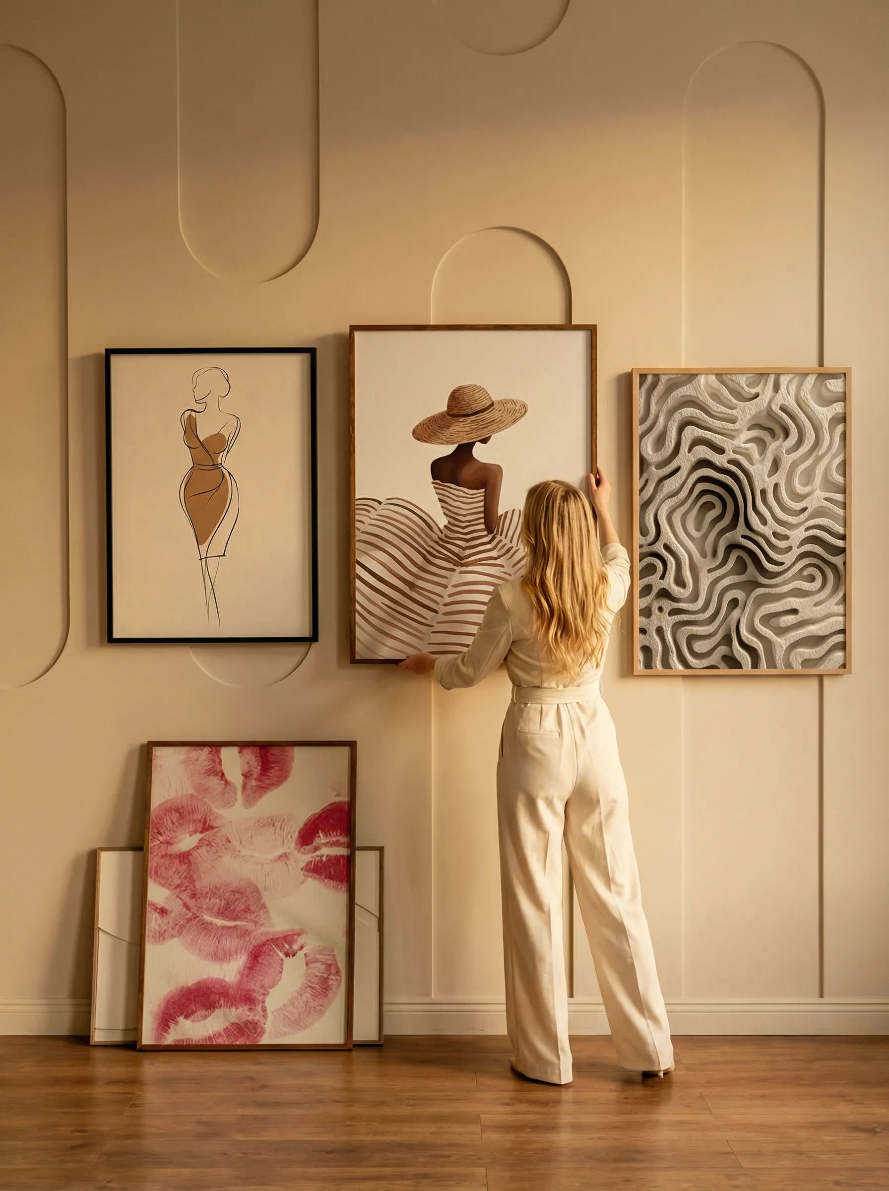 From our curated collection to your wall in three simple steps. No frames needed — just choose, order, and enjoy.