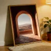 Moroccan Archway Desert View Wall Art Print — Terracotta Earth Tone Landscape Poster