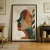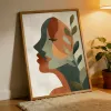 Geef je interieur een upgrade met deze prachtig gelaagde abstracte kunstprint. Een vrouwelijk profiel is opgebouwd uit overlappende geometrische vormen in warm terracotta, saliegroen en gedempte goudtinten, met delicate botanische bladeren die van achteren tevoorschijn komen. De getextureerde, korrelige afwerking geeft dit stuk een ambachtelijk gevoel dat doet denken aan mid-century moderne illustratie. Een veelzijdig statement stuk dat warmte en artistieke diepte brengt in elke woonkamer, slaapkamer of kantoor. Gedrukt op premium museumkwaliteit papier met archivale inkten voor langdurige kleurvastheid.